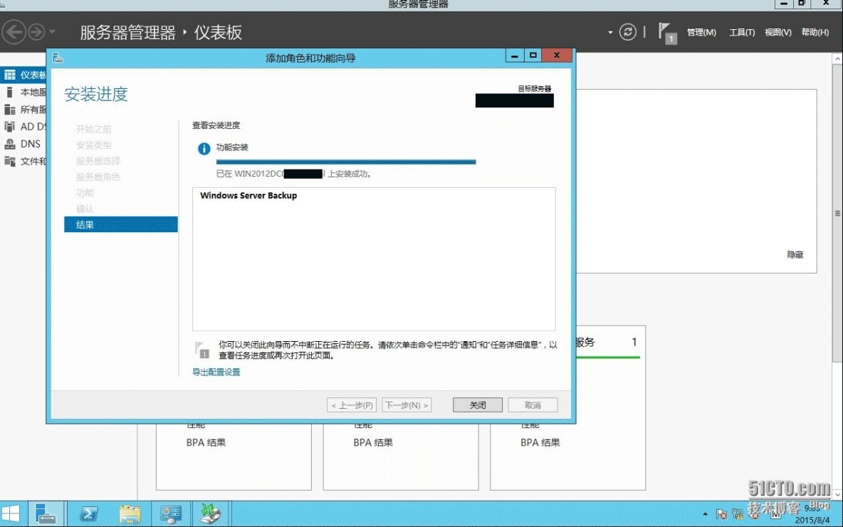 1、 首先需要添加windows server backup功能組件,具體步驟:打開服務器管理器-添加角色和功能向導-功能-windows server backup