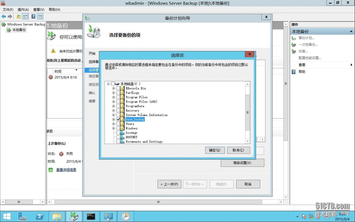 4、選擇“添加項目”,選“test_backup”,確認后,選“下一步”。(測試中使用c:\test_backup)