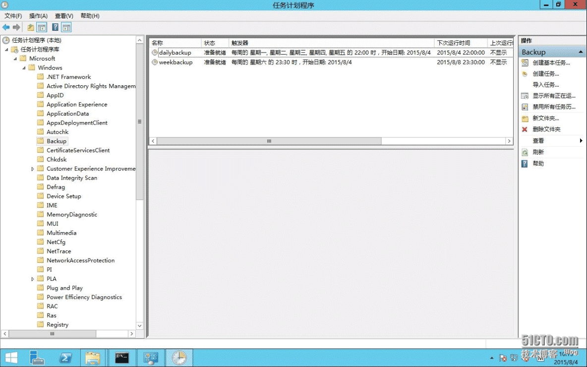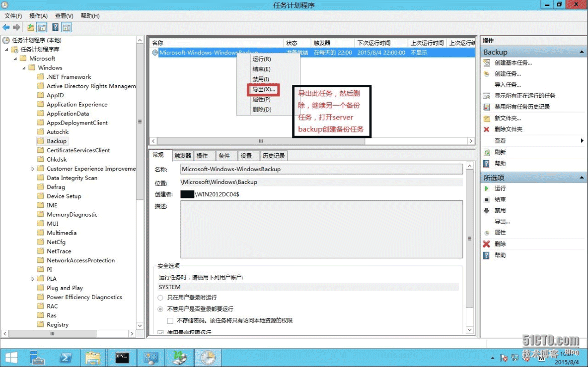9、如果我們要創建多個備份計劃,所以在任務計劃中導出任務,再刪除它,然后在server backup繼續運行備份向導就可以添加周備份、月備份等,此步驟是完成多個備份計劃的關鍵!