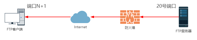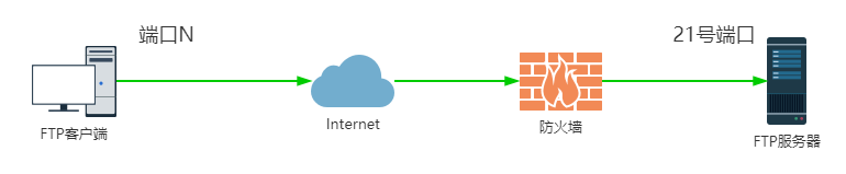 **缺點:**對服務器端的管理不利。因為客戶端數據端口連到FTP服務器的數據端口P時,有可能被服務器端的防火墻攔截。