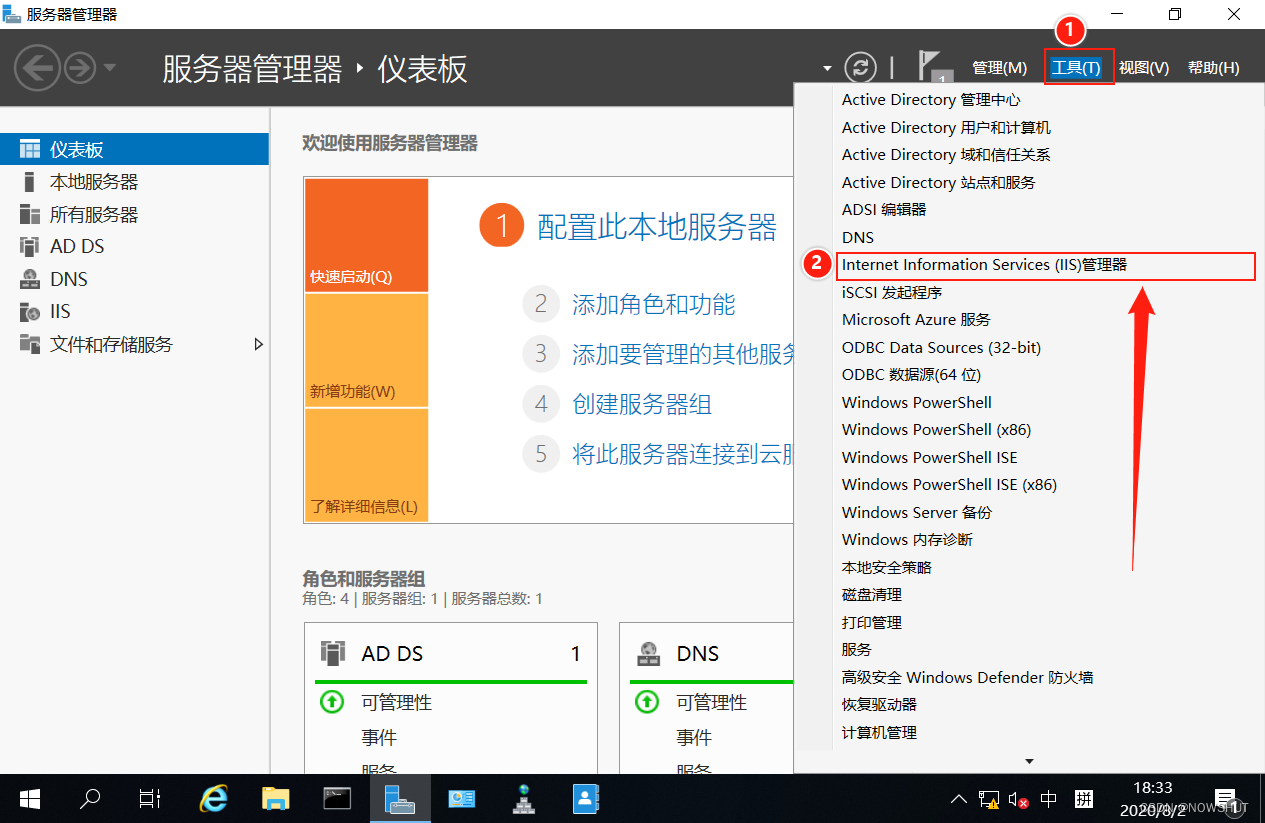 在Windows Server 2019系統(tǒng)中,IIS角色是可選組件,默認情況下是沒有安裝的。