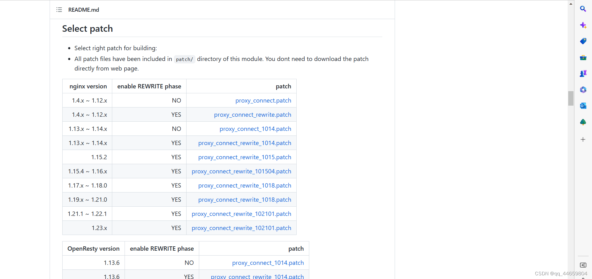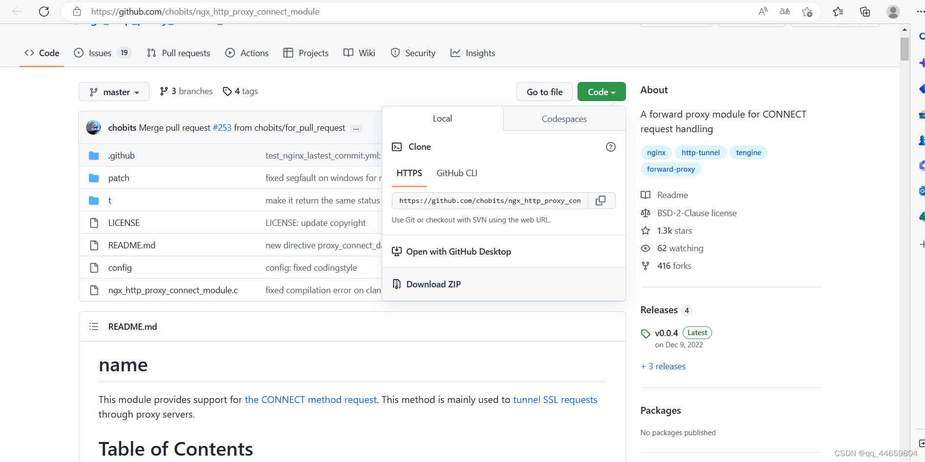 正向代理,指的是通過代理服務器 代理瀏覽器/客戶端去重定向請求訪問到目標服務器 的一種代理服務。正向代理服務的特點是代理服務器 代理的對象是瀏覽器/客戶端,也就是對于目標服務器 來說瀏覽器/客戶端是隱藏的。nginx默認支持正向代理http,不支持httpsnginx官方并不支持直接轉發https請求,nginx支持https需要ngx_http_proxy_connect_module模塊。github上開源了模塊 https://github.com/chobits/ngx_http_proxy_connect_module。不過維護的ngx_http_proxy_connect_module模塊的補丁也是有nginx版本限制的,需根據自身使用的nginx版本選擇相應的正向代理模塊。可以在REDEME.md的Select patch中查看nginx版本和模塊的對應關系安裝包準備下載nginx安裝包下載地址