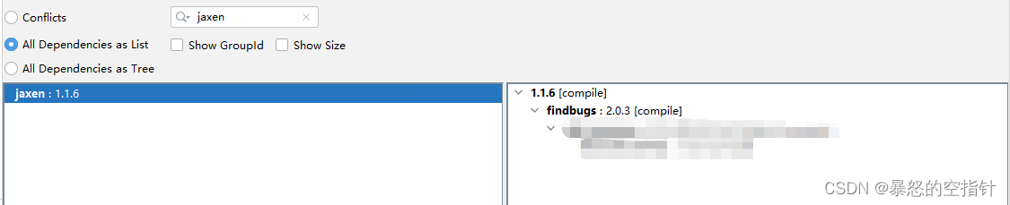 我一看,要不我測(cè)試測(cè)試試試?于是我查了下我這兩個(gè)包的版本。Jaxen-1.1.6剛開(kāi)始排查過(guò)了不用看了,看看第二個(gè)包吧,果不其然: