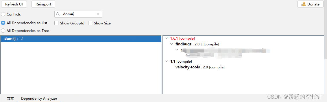 第一步:解決沖突看見(jiàn)這個(gè)問(wèn)題,第一時(shí)間當(dāng)然是認(rèn)為包沖突拉,那我們第一時(shí)間拉出maven helper 來(lái)看看這個(gè)類(lèi)所屬的包是不是有沖突了。如下圖所示: