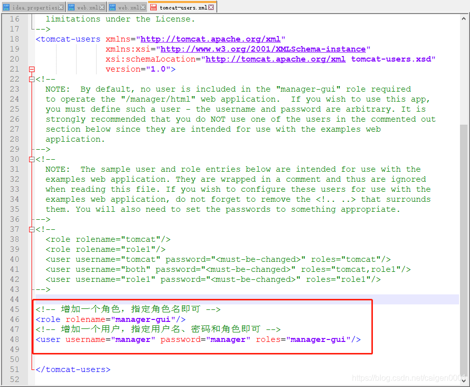 配置Tomcat的conf/tomcat-users.xml文件