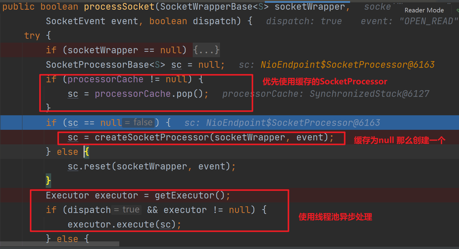 processKey會(huì)調(diào)用到processSocket,最終使用tomcat線程池中的線程進(jìn)行異步處理