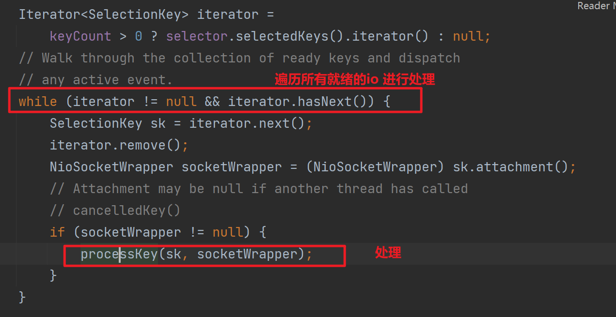 通過(guò)Selector獲取獲取當(dāng)前就緒的IO,keyCount記錄就緒數(shù)目。