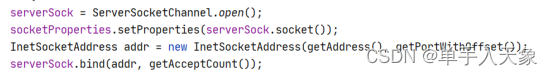 說(shuō)明:在Java語(yǔ)言的NIO中,類ServerSocketChannel就是用來(lái)處理TPC連接的客戶端,他的open方法就是用例建立一個(gè)TPC連接。