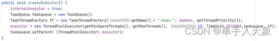 AbstractEndpoint.createExecutor,用于創(chuàng)建 Worker 線程池,這個(gè)線程池是用來(lái)處理實(shí)際的請(qǐng)求的,把配置文件中的初始線程數(shù)10、最大線程數(shù)200等信息傳進(jìn)去,創(chuàng)建一個(gè)線程池executor