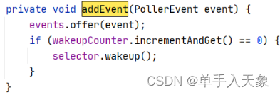 當(dāng)Acceptor接收到客戶端的請(qǐng)求時(shí),調(diào)用addEvent() 方法會(huì)將 Socket 添加到該 Poller 的 PollerEvent 隊(duì)列中。并調(diào)用了NIO中selector.wakeup方法,喚醒了Poller。到此,這一次請(qǐng)求中 Acceptor 的任務(wù)就完成了。