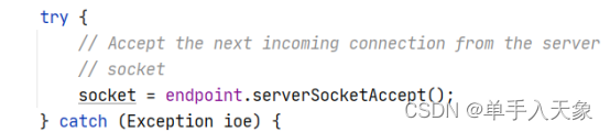 Acceptor的run方法,無(wú)限循環(huán)在這里接受連接請(qǐng)求(假如啟動(dòng)后客戶端發(fā)起一個(gè)請(qǐng)求,這里就是第一時(shí)間捕獲到)
