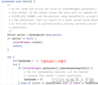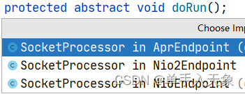 里面調(diào)用的是 doRun方法,他是抽象方法,根據(jù)當(dāng)前Tomcat使用的模式是NIO還是APR去選擇執(zhí)行不同的方法(默認(rèn)是NIO執(zhí)行NioEndpoint里的內(nèi)部類SocketProcessor.doRun)