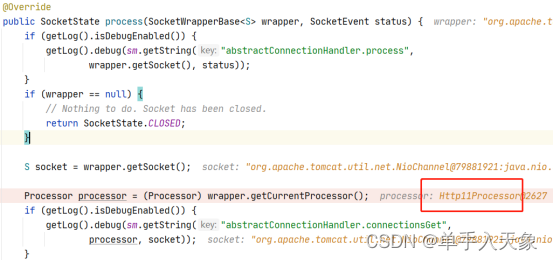 可以看到他是獲取的Http11Processor,因?yàn)槟J(rèn)用的協(xié)議是http1.1