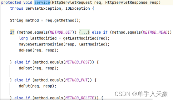 然后這里就是去調(diào)用我們熟悉的HttpServlet的service方法,解析里面對(duì)應(yīng)的doGet方法,或者doPost方法等等… ,也就是執(zhí)行具體業(yè)務(wù)方法。