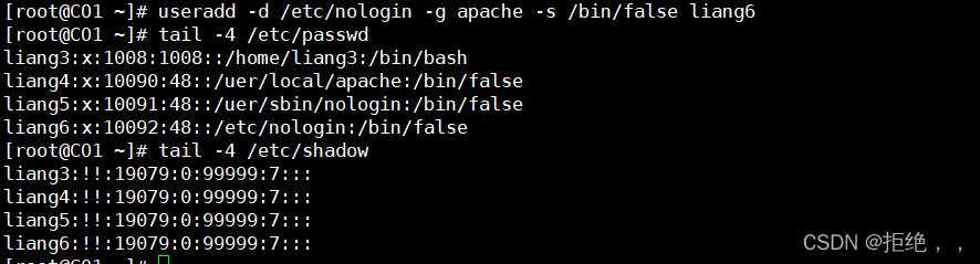 注: useradd命令參數(shù)必須是在創(chuàng)建賬戶時同時輸入才有用,創(chuàng)建賬戶后無法使用useradd更改參數(shù)