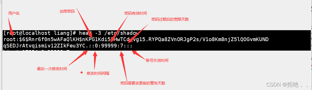 /etc/shadow 文件只有root用戶擁有讀權限,其他用戶沒有任何權限,這樣就保證了用戶密碼的安全性