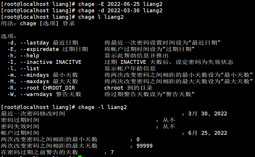 設置用戶liang2將在2022.06.25號失效(不可登錄)