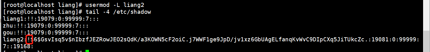 初始無“!”,鎖定后出現(xiàn)“!”密碼不可用,解鎖后“!”消失密碼可用