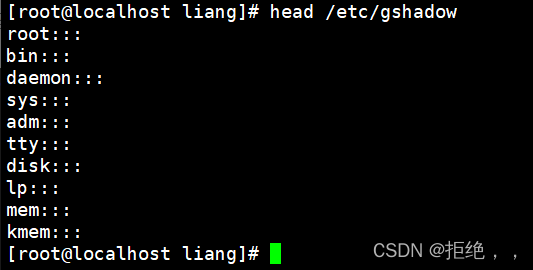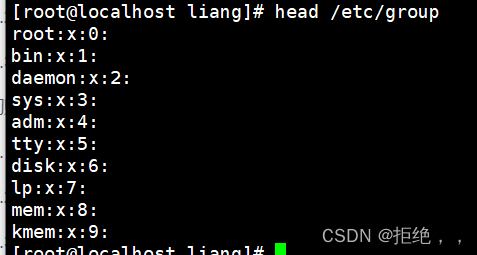 基本組(私有組):基于某種特定聯(lián)系(如都需要訪問FTP服務)將多個用戶集合在一起,即構成一個用戶組,表示該組內所有用戶的賬號稱為組賬號。每一個用戶賬號至少屬于一個組,這個組稱為該用的基本組(或私有組);附加組(公共組):若該用戶同時還包含在其他的組中,則這些組稱為該用戶的附加組(或公共組)2.0 組文件存放位置/etc/group:保存組帳號基本信息
