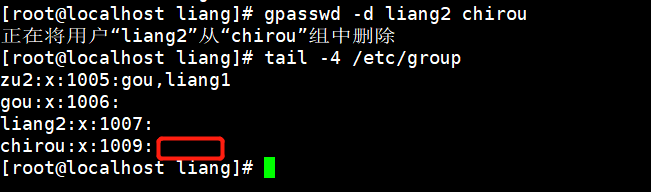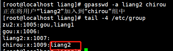 選項說明-a添加用戶到組-d從組中刪除用戶-A指定用戶管理員-M指定組成員和-A差不多-r刪除密碼-R限制用戶登入組,只有組中成員才可以用newgrp加入該組4.3.1 示例:
