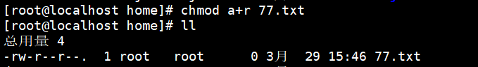 3.1.2.設置所有人可讀 所有者可寫:chmod a+r 77.txt
