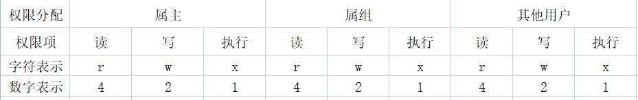 符號含義u屬主g屬組o其他用戶a所有用戶r讀w寫x運行權限+增加-去除=設置權限nnn3位八進制數(shù)