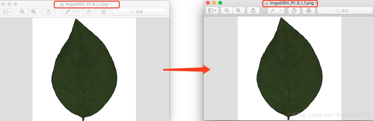 convert imgyd064_R1_9_t_1.jpg imgyd064_R1_9_t_1.png圖片原名為 imgyd064_R1_9_t_1.jpg,是一張植物葉片的圖像,經過轉換后變為 png 格式文件,轉化之后雖然表面看不出大的變化,但是圖片大小明顯增大 了(1.6M增至6.6M),這說明格式發生了根本性的轉換,如下所示: