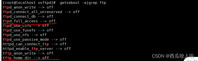 #查看Selinux 中關于vsftpd 的參數getsebool -a | grep ftp