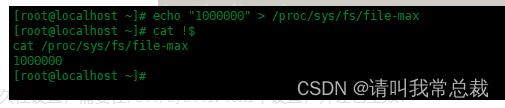 [root@localhost ~]# echo '1000000' > /proc/sys/fs/file-max