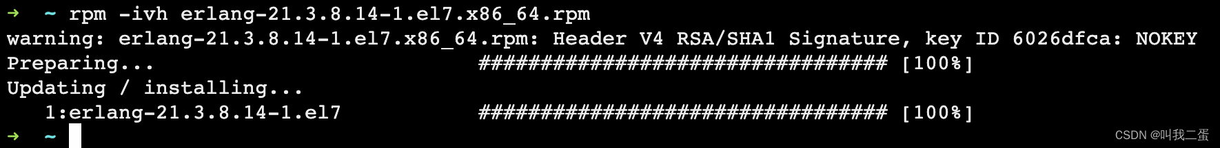 rpm -ivh erlang-21.3.8.14-1.el7.x86_64.rpm