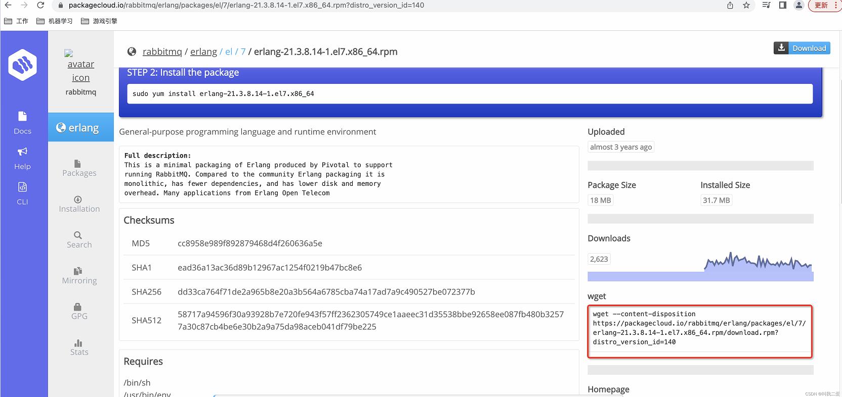 1.下載安裝包執行下載命令,如果下載超時,點擊進行下載RabbitMQ安裝包