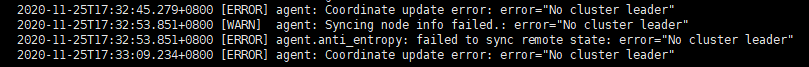 啟動(dòng)Consul集群組件后,會(huì)看到如下信息(No cluster leader):