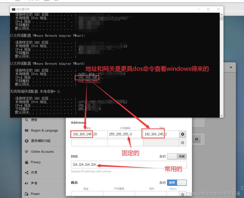 然后將下面的東西賦值上去填上自己當(dāng)初設(shè)置的網(wǎng)絡(luò)地址和網(wǎng)關(guān)