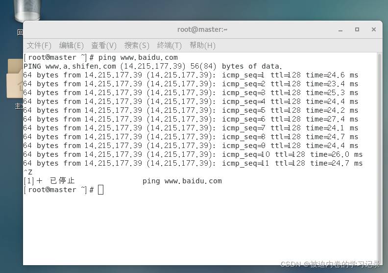 首先得查看一下自己的Linux系統(tǒng)是否鏈接網(wǎng)絡(luò),大家可以打開(kāi)Linux系統(tǒng)的終端來(lái)ping一下百度的網(wǎng)址查看一下