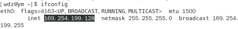 如果沒有填ipaddr,系統會默認分配,ipaddr=169.254.199.128 ,這是DHCP分配的的。