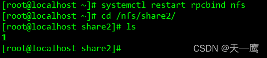 3.回到客戶端重啟NFS服務并進入客戶端的掛載目錄查看服務端寫入的文件?