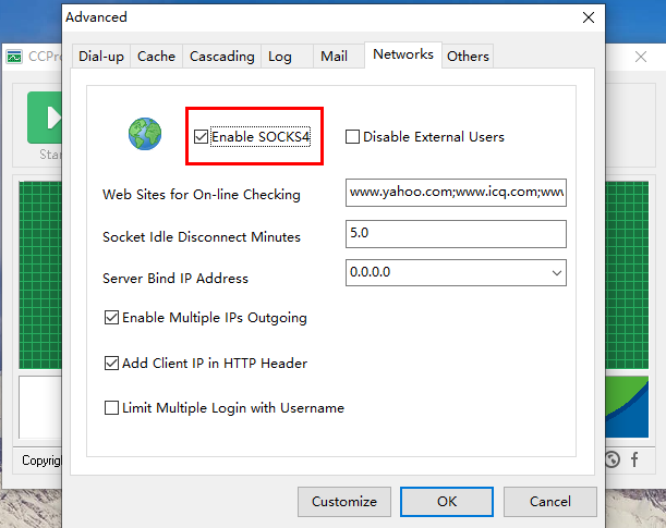 在Windows環境中下載軟件 CCProxy配置 CCProxy 環境,點擊(齒輪)按鈕Option,配置如第一張圖參數,然后再點擊 Advanced,配置如第二張圖參數: