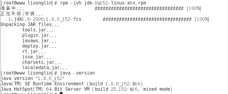使用rpm命令安裝: rpm -ivh jdk-8u152-linux-x64.rpm
