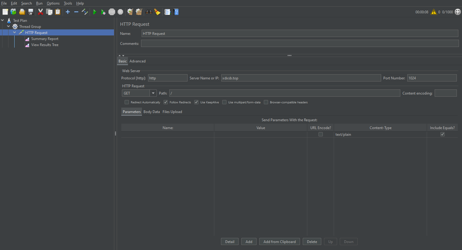 再設置HTTP請求,填寫請求域名,端口號,文件路徑