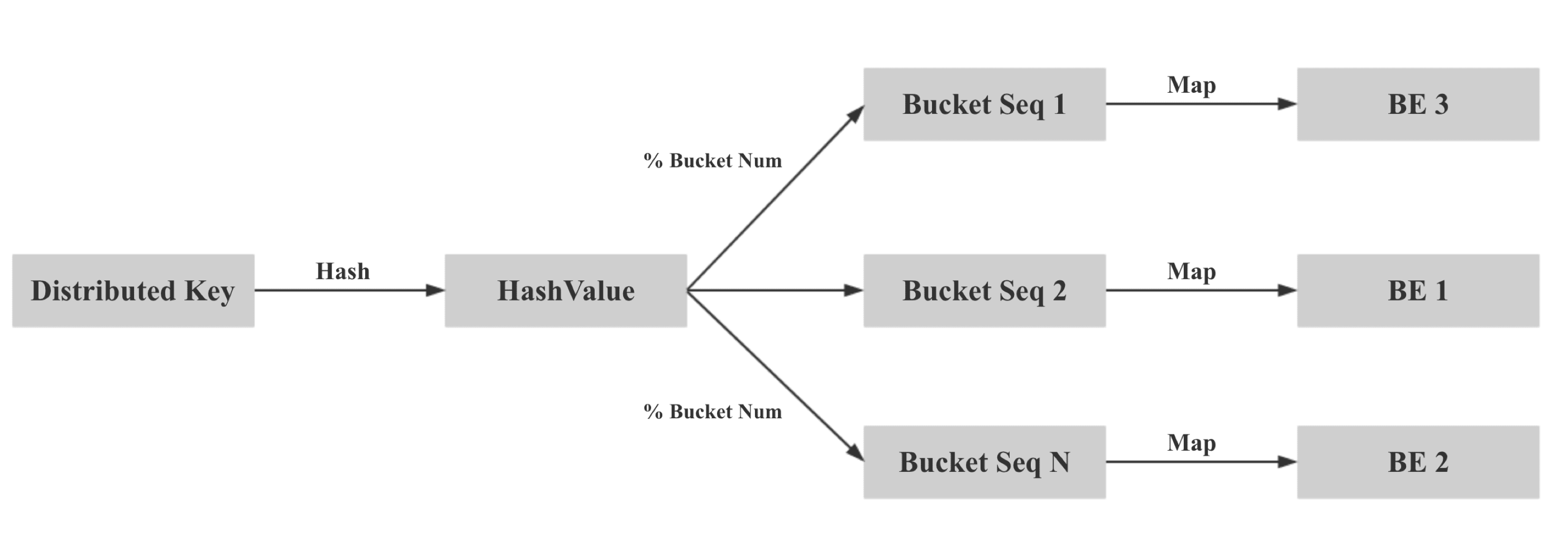 具體來說,第一步:我們計算 Distributed Key 的 hash 值,并對 bucket num 取模,保證相同 Distributed Key 的數(shù)據(jù)映射到相同的 Bucket Seq。