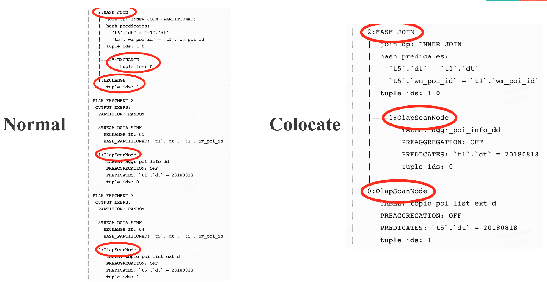A: explain 的結(jié)果中 Hash Join 的孩子節(jié)點如果直接是 OlapScanNode, 沒有 Exchange Node,就說明是 Colocate Join