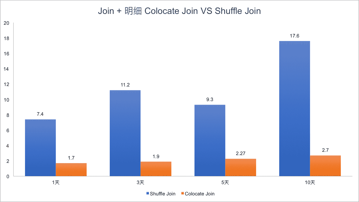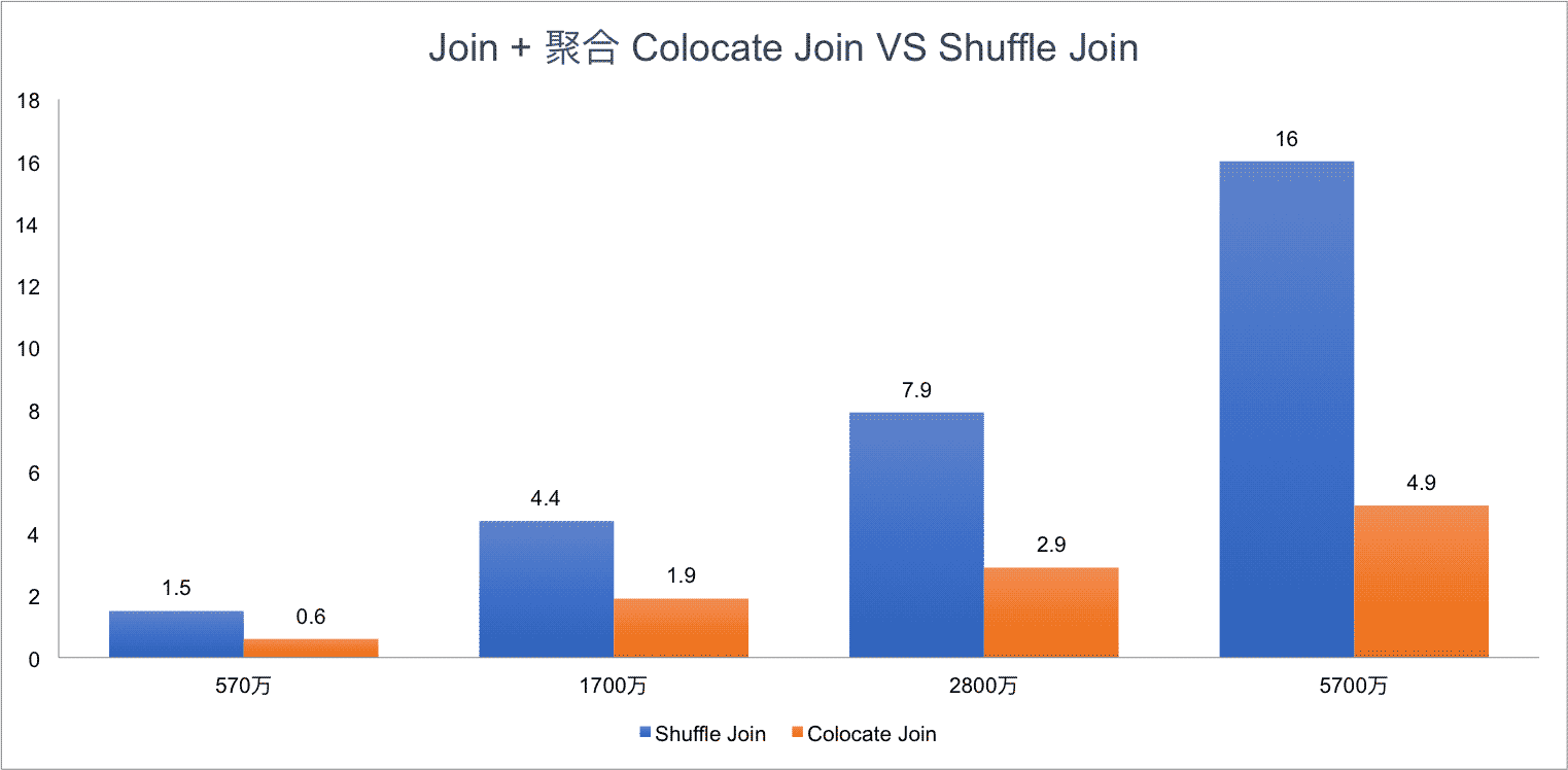 可以看到,Colocate Join 相比 Shuffle Join 有明顯的性能提升,而且隨著集群規(guī)模越大,Join 的數(shù)據(jù)量越多,Colocate Join 的優(yōu)勢會更明顯。