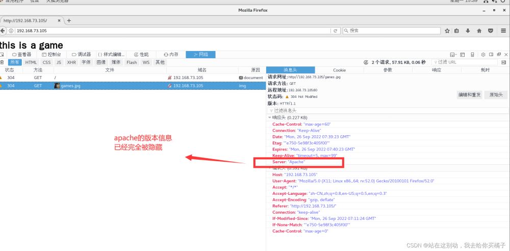 瀏覽器訪問 http://192.168.80.10 ,雙擊200響應消息查看是否存在 Content-Encoding: gzip