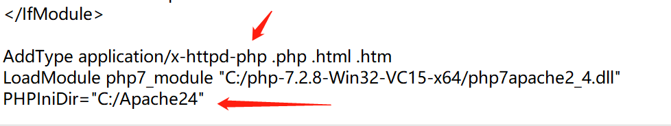 注意:PHPIniDir必須寫在LoadModule下面,否則會(huì)出現(xiàn)報(bào)錯(cuò)!