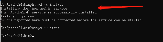 (3)httpd -k install 安裝服務(wù)
