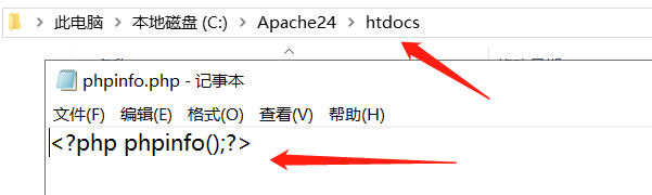 在htdocs文件夾中新建PHP文件phpinfo,并寫入內(nèi)容: