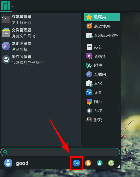 在Manjaro桌面上點(diǎn)左上角的whisker菜單按鈕。