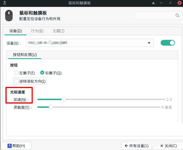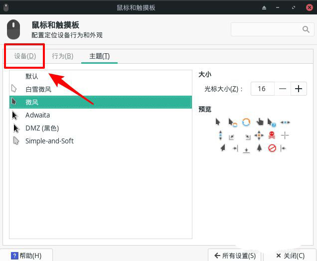 在【鼠標(biāo)和觸摸板】中,切換到【設(shè)備】選項(xiàng)卡。