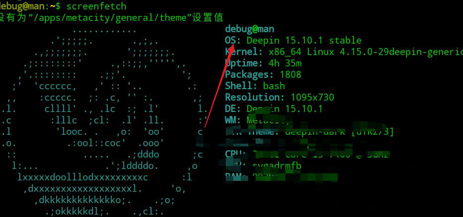 之外還可以安裝screenfetch,可以圖形化的顯示deepin linux的系統版本信息。