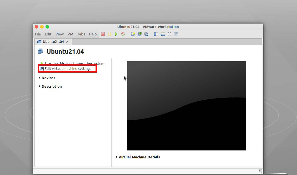 首先我們打開vmware16窗口,在里面打開我們的虛擬機,選擇 編輯虛擬機設置。